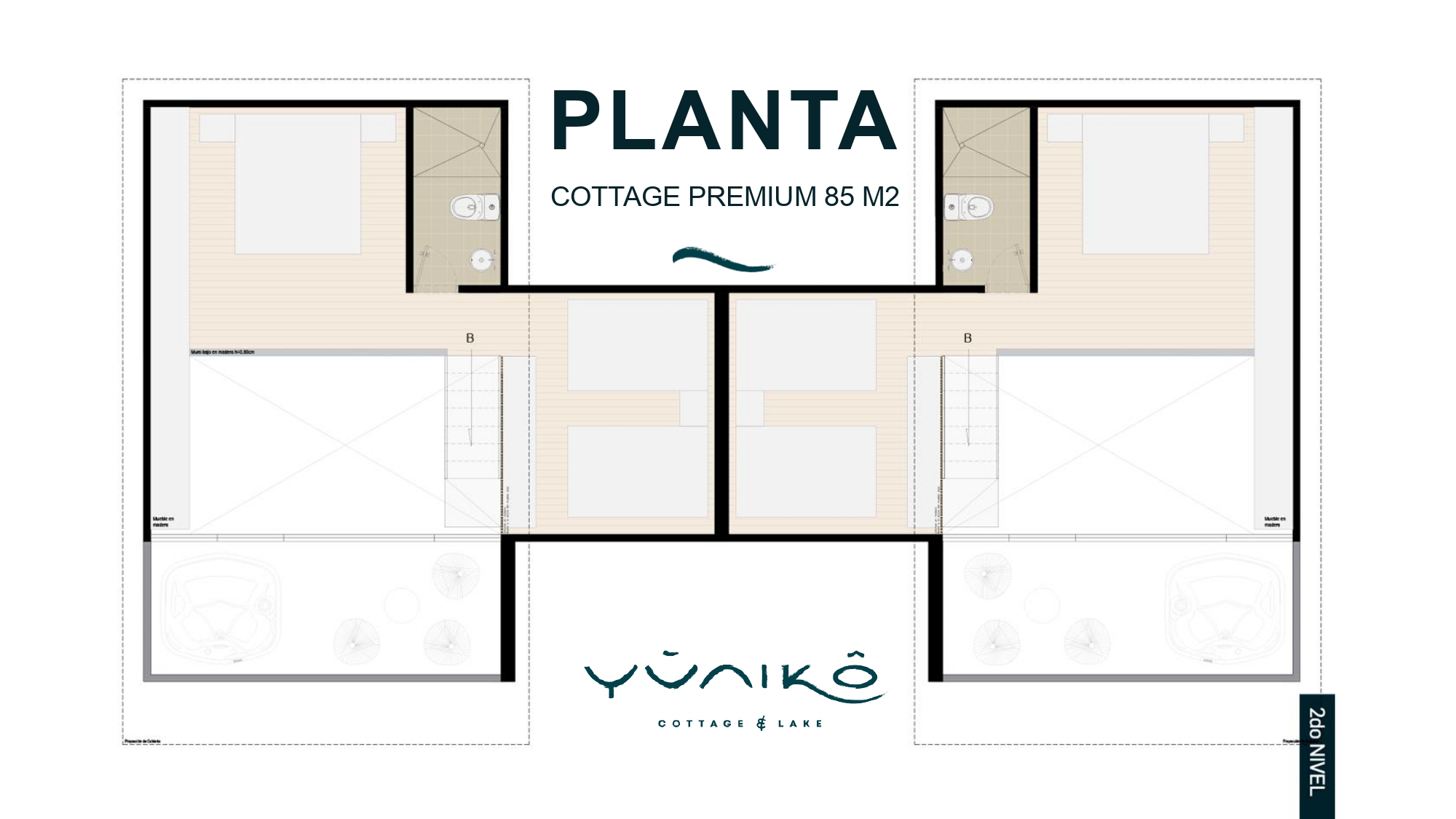 COTTAGE PREMIUM 85 M2 Cómoda suite con 85 m2 , 3 habitaciones – 2 baños-cocina – deck y jacuzzi INVERSIÓN 570,000,000 pesos SEPARA TU SUITE